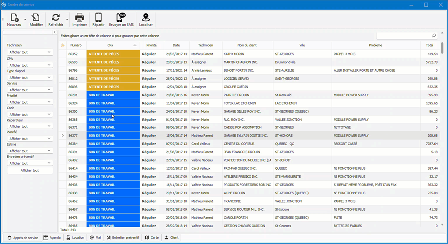 possible de localiser un technicien sur route afin d'attribuer un appel de