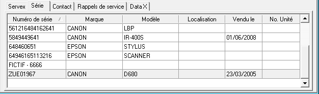 Sous l’onglet Série, vous allez pouvoir consulter la liste des numéros de série appartenant à ce client.