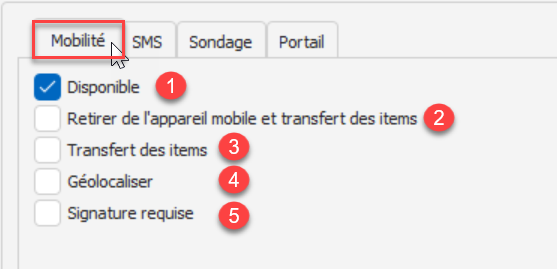 Cet onglet est lié à l’utilisation de Servex Mobile.