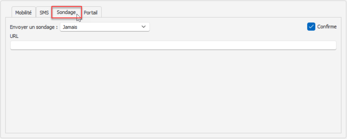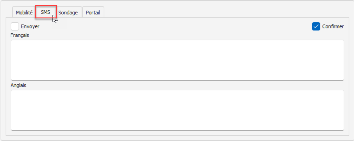 Cet onglet s’applique uniquement si l’envoi de SMS via Servex est activé.