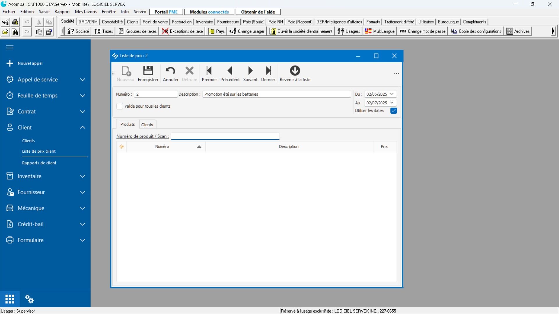 Important : Ceci n'affecte pas le prix régulier dans la fiche ''Produit'' et s'applique seulement à la liste de prix client.