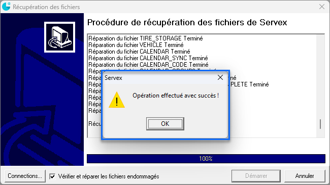 Pour effectuer la récupération des fichiers dans Servex, suivez ces étapes :