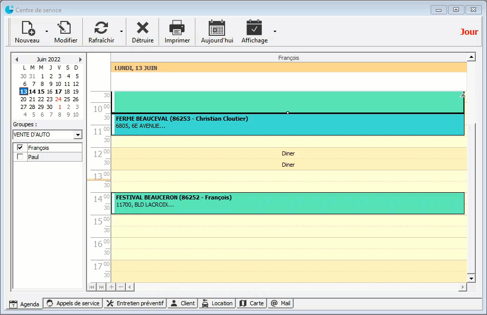 L'onglet sera masqué lors de votre navigation habituellement. Lorsque vous désirerez revenir à cette fenêtre, il suffit de cliquer sur ''Agenda'' en haut à gauche pour la faire apparaître.