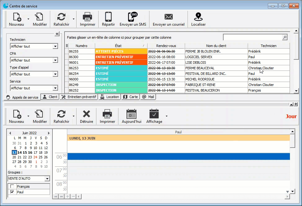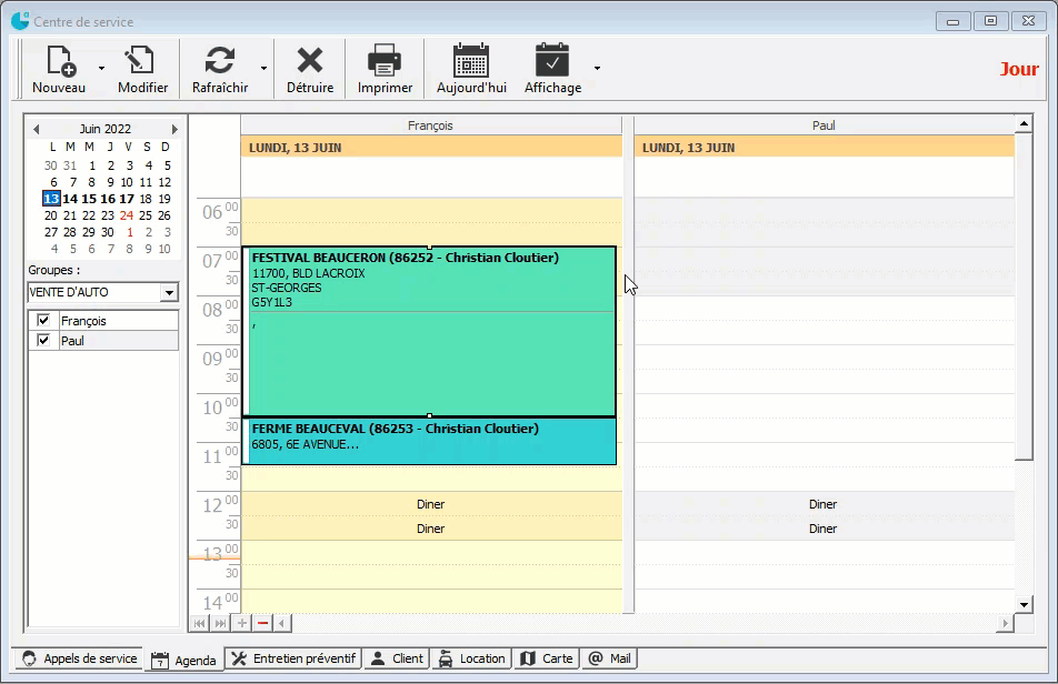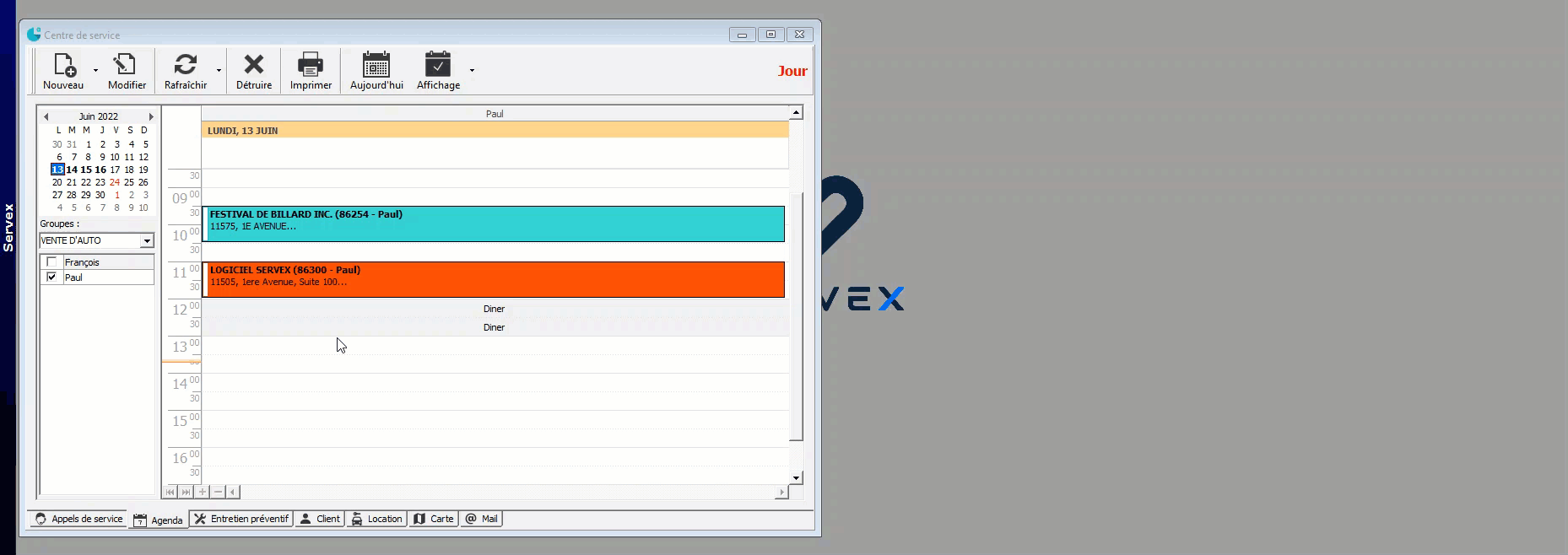 Vous pouvez détacher votre calendrier afin de le faire afficher à côté de l'onglet désirez dans l'interface du Centre de service